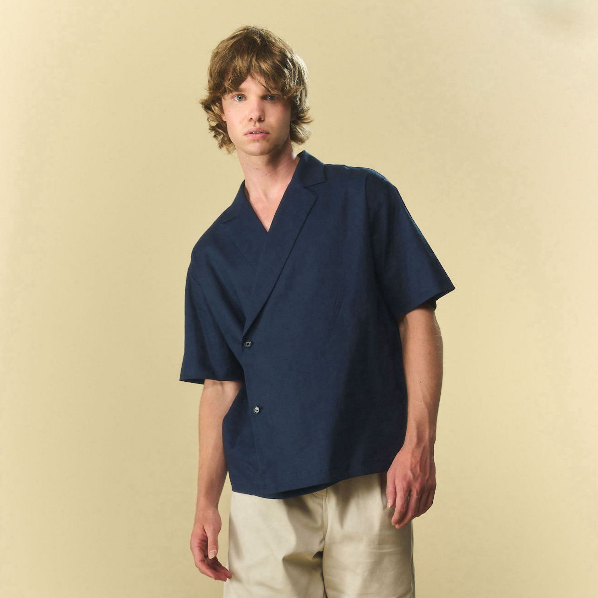 Navy lightweight two-button cross body shirt